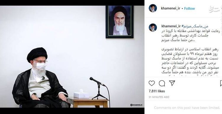 تصویری از رعایت قواعد بهداشتی مقابله با کرونا در جلسات کاری توسط رهبر انقلاب لحظاتی پیش در صفحه اینستاگرامی منتسب به ایشان منتشر شد.
