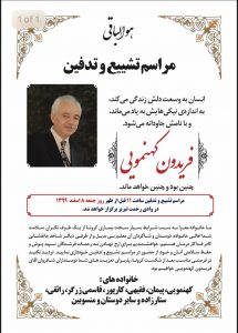 فریدون کهنمویی دبیر نام آشنا و فرهیخته فیزیک دبیرستان‌های تبریز دیروز در سن ۸۷ سالگی به علت عارضه قلبی جان به جان آفرین سپرد.