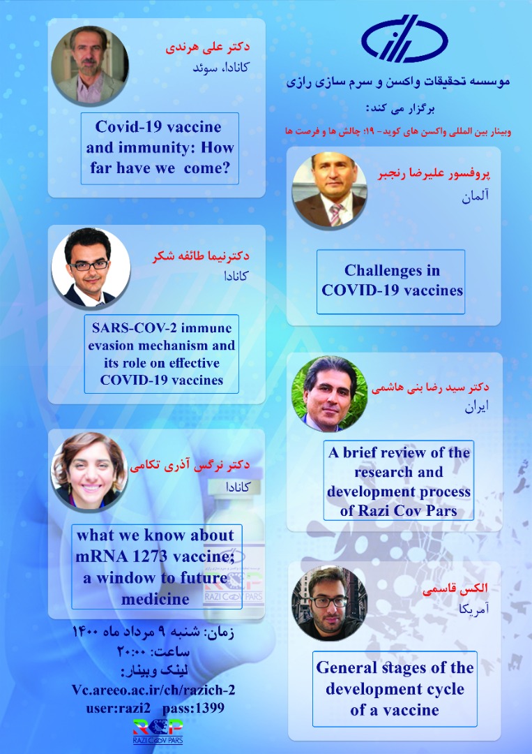 موسسه تحقیقات واکسن و سرم سازی رازی برگزار می کند: “وبینار بین المللی واکسن های کووید19، فرصت ها و چالش ها”
