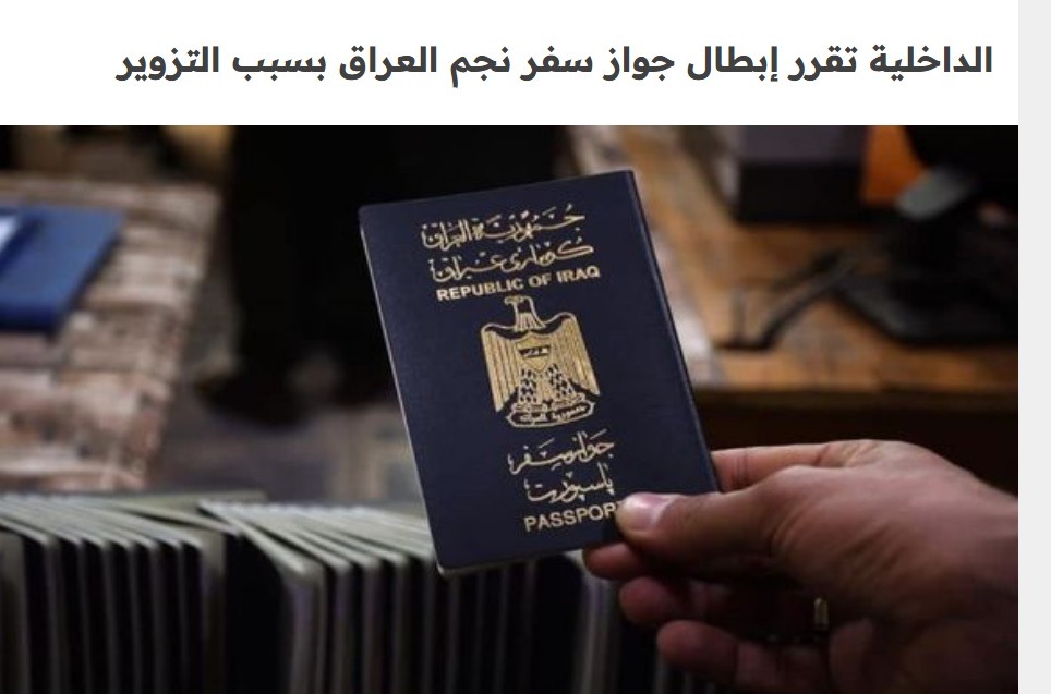 عصرآزادی آنلاین: سایت «الراصد العراقی» خبر داد یک منبع در وزارت کشور اعلام کرد وزارت خارجه تصمیم گرفت تا پاسپورت صفا هادی بازیکن ملی پوش و عضو باشگاه تراکتور را باطل کند.