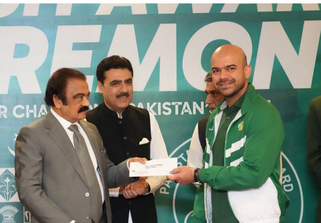 وزیر ورزش کشور پاکستان از یوسف کرمی تجلیل به عمل آورد.