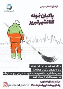 توضیح: طرح انتخاب پاکبان نمونه کلان‌شهر تبریز از اول اردیبهشت تا اول خرداد ١۴٠٠ در تبریز اجرا خواهد شد و از طریق این فراخوان از کلیه شهروندان دعوت به عمل می‌آوریم تا برای اجرایی شدن این طرح اقدام کنند و در آن مشارکت داشته باشند.