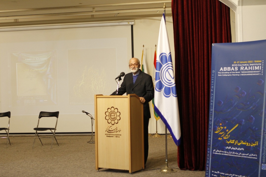 در ادامه دکتر حجت‌‌الله ایوبی، دبیرکل کمیسیون ملی یونسکو در ایران، با اظهار قدردانی از رئیس مؤسسه فرهنگی اکو در برگزاری محفل باشکوه رونمایی از آثار خوشنویسی و کتاب استاد رحیمی بیان داشت: هنر آسمانی خوشنویسی که کشورهای راه ابریشم و تمدن‌های شرقی به آن افتخار می‌کنند، آن‌قدر ارجمند بود که به یکی از بهترین هنرهای روزگار تبدیل شد. خوشنویسان این دیار از این هنر پاسداری کردند، آن را به اوج رساندند و با ابداع هنر نقاشی‌خط، توانستند مرزها را درنوردند و از سرآمد هنرمندان جهان باشند. امروز هنر خوشنویسی مردمی شده است و با افتخار «برنامه‌ ملی پاسداری از هنر سنتی خوشنویسی ایران» به ثبت جهانی رسید.