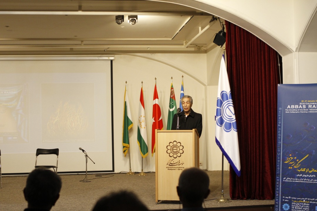 پرفسور سرور بختی، رئیس مؤسسه فرهنگی اکو، در افتتاح این مراسم، با تأکید بر اینکه هنر خط و خوشنویسی، به‌مثابه ظریف‌ترین و نفیس‌ترین هنر در میان مردمان خوش‌ذوق منطقه اکو است، اذعان کرد: خوشبختانه این هنر والا امروز نیز در روزگار ما نه‌تنها افت نکرده است، بلکه بالش و نازش یافته و هنرمندان اصیل با کوشش و تلاش بی‌وقفه به آن عمر دوباره بخشیده‌‌اند.