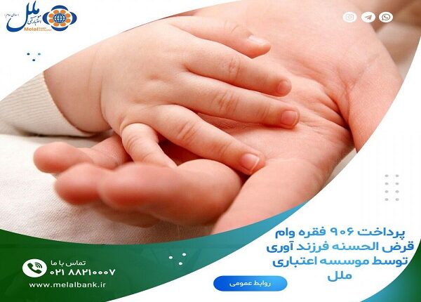 موسسه اعتباری ملل در راستای اجرای مسئولیت های اجتماعی و حمایت از خانوادههای ایرانی تعداد ۹۰۶ فقره وام فرزندآوری به مبلغ ۳۴۱/۳۵۰ میلیون ریال از ابتدای سال تا پایان مرداد ماه پرداخت نمود.