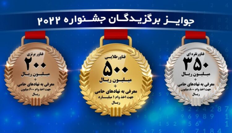 جوایز این جشنواره در سه سکوی طلایی، نقره ای و برنزی اهدا می شود که برای فناور اول مبلغ پنجاه میلیون تومان، فناور دوم مبلغ سیوپنج میلیون تومان و فناور سوم مبلغ بیست میلیون تومان در نظر گرفته شده است.