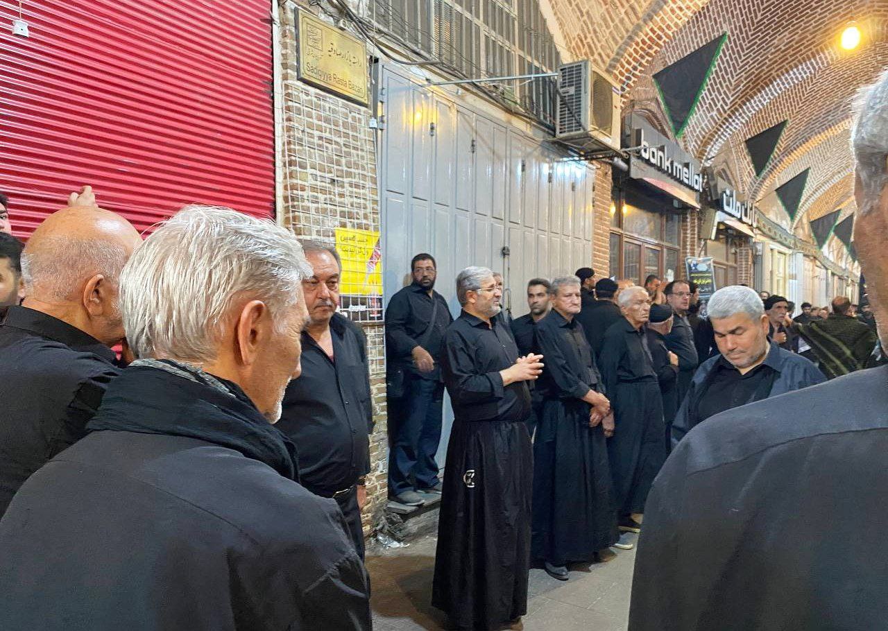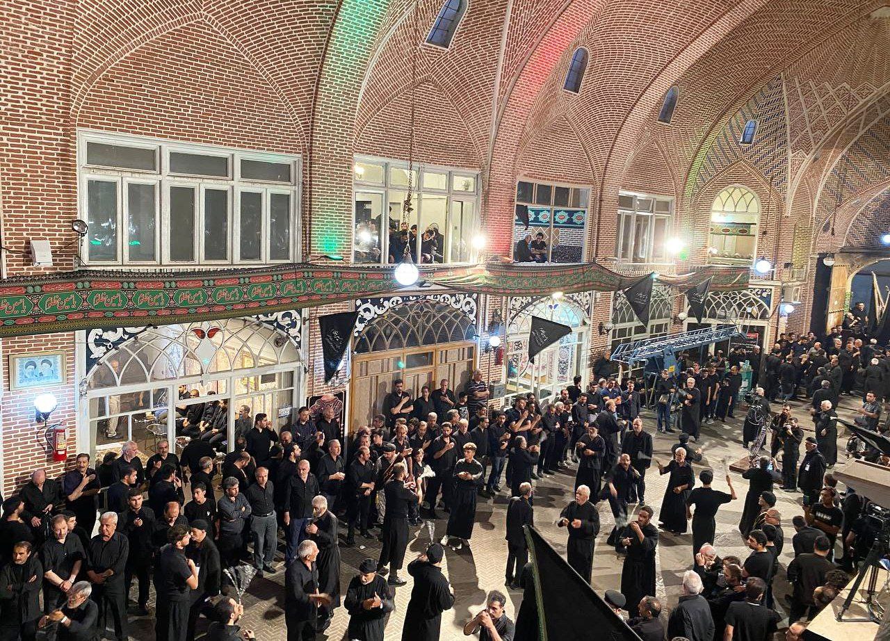 در بازار سرپوشیده و سنتی تبریز نیز مراسم عزاداری با شور و شوق خاصی برپا میشود؛ گروهی از عزاداران بازار با پوشیدن کُت و شلوار مشکی به صورت یکدست و متحدالشکل آیینها و عزاداریهای خاصی را برگزار میکنند.
