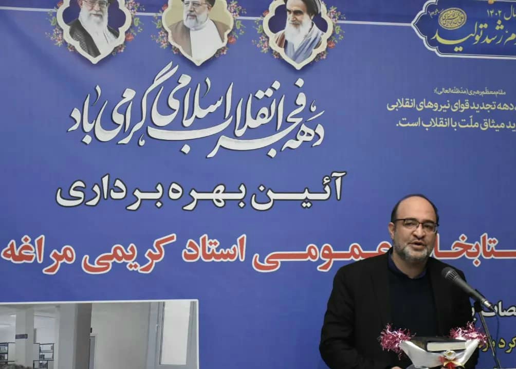 معاون استاندار آذربایجان شرقی و فرماندار ویژه شهرستان مراغه نیز در این آیین با بیان اینکه فضای فیزیکی کتابخانه ای مراغه با توجه به ظرفیت بسیار بالای فرهنگی آن همچنان محدود است و رتبه مراغه از نظر این زیرساخت فرهنگی در ردههای نهایی آذربایجان شرقی قرار دارد ابراز امیدواری کرد با همکاری و هم افزایی شورا و شهرداری و همچنین اداره کل کتابخانه های عمومی استان هر چه سریعتر عملیات اجرایی احداث کتابخانه ۵ هزار متری شهرک ولیعصر شهر مراغه آغاز گردد تا علاوه بر افزایش سرانه فرهنگی، زمینه برای ایجاد کتابخانه مرکزی مجهز با خدمات به روز جهت استفاده مردم فرهنگ دوست شهرستان فراهم گردد.