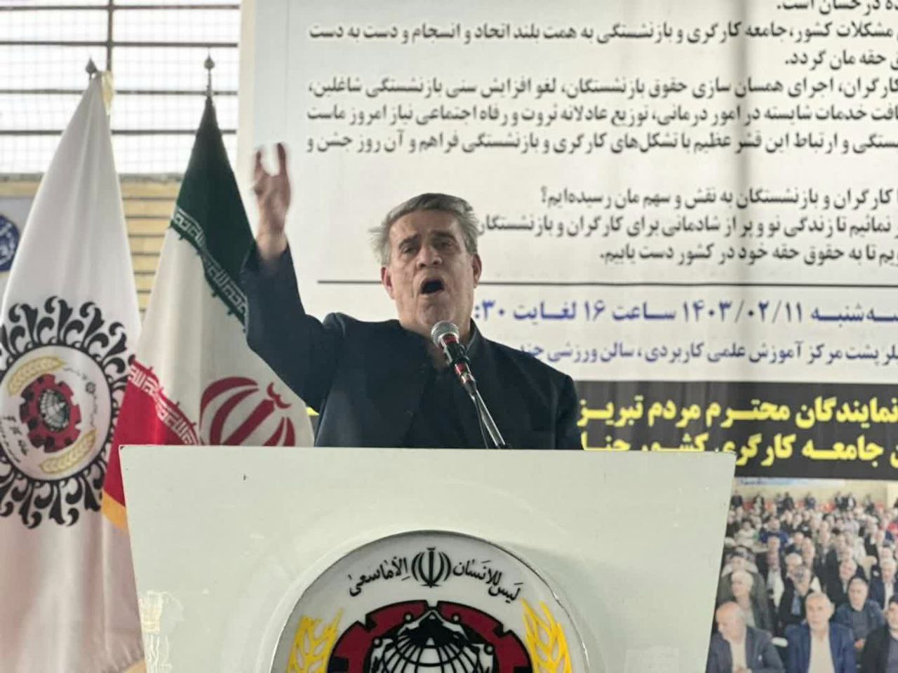 معاون دبیر کل خانه کارگر کشور در حالی که سخنانش با شعارها و تشویق های کارگران و بازنشستگان همراه شده بود تاکید کرد: طبقه حقوق بگیر ما فقیر و فقیرتر می شود و عامل طغیان است، فردا نگویید چرا ما دلسوزان نظام و وفاداران به رهبری، گوشزد نکرده ایم!
