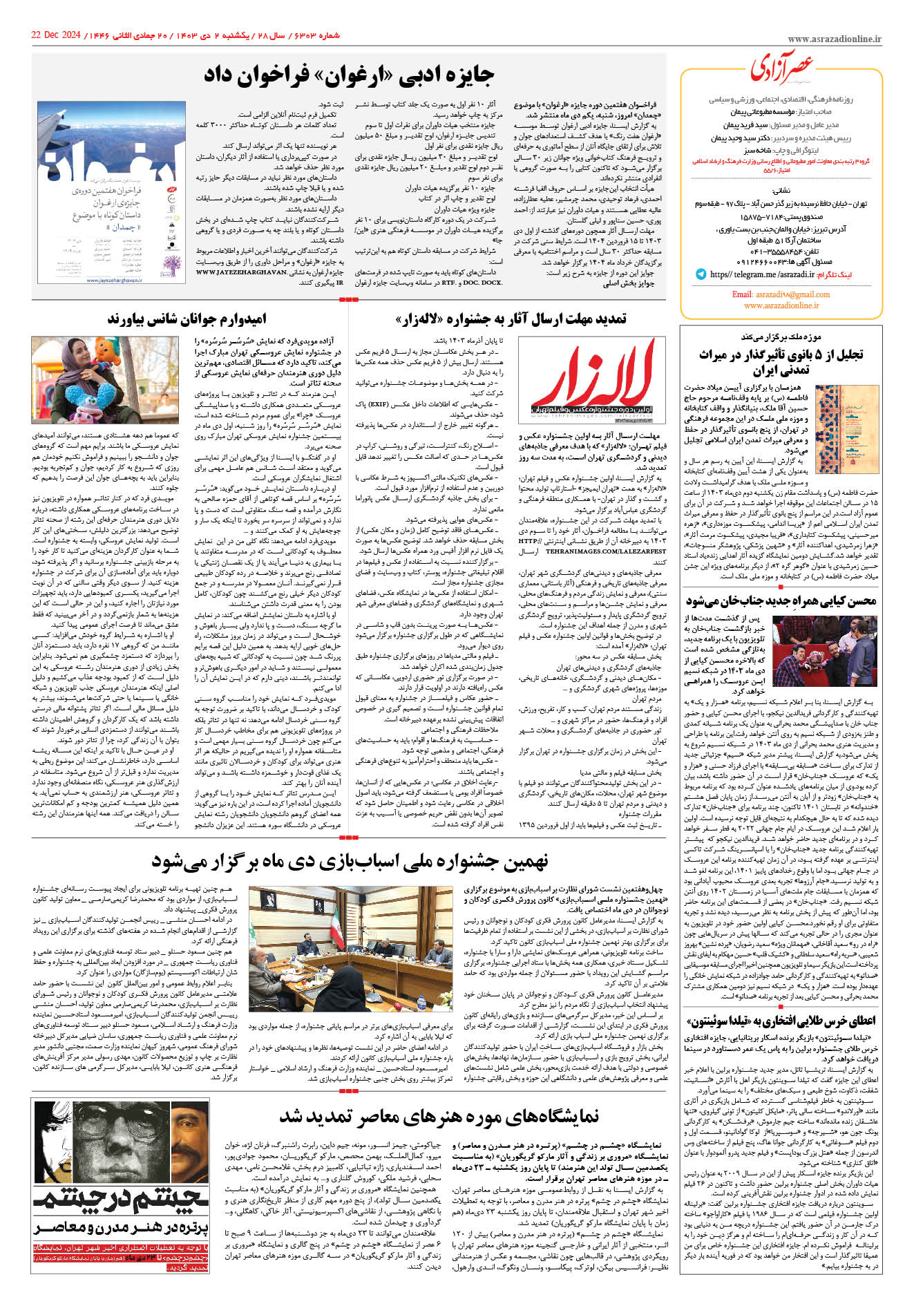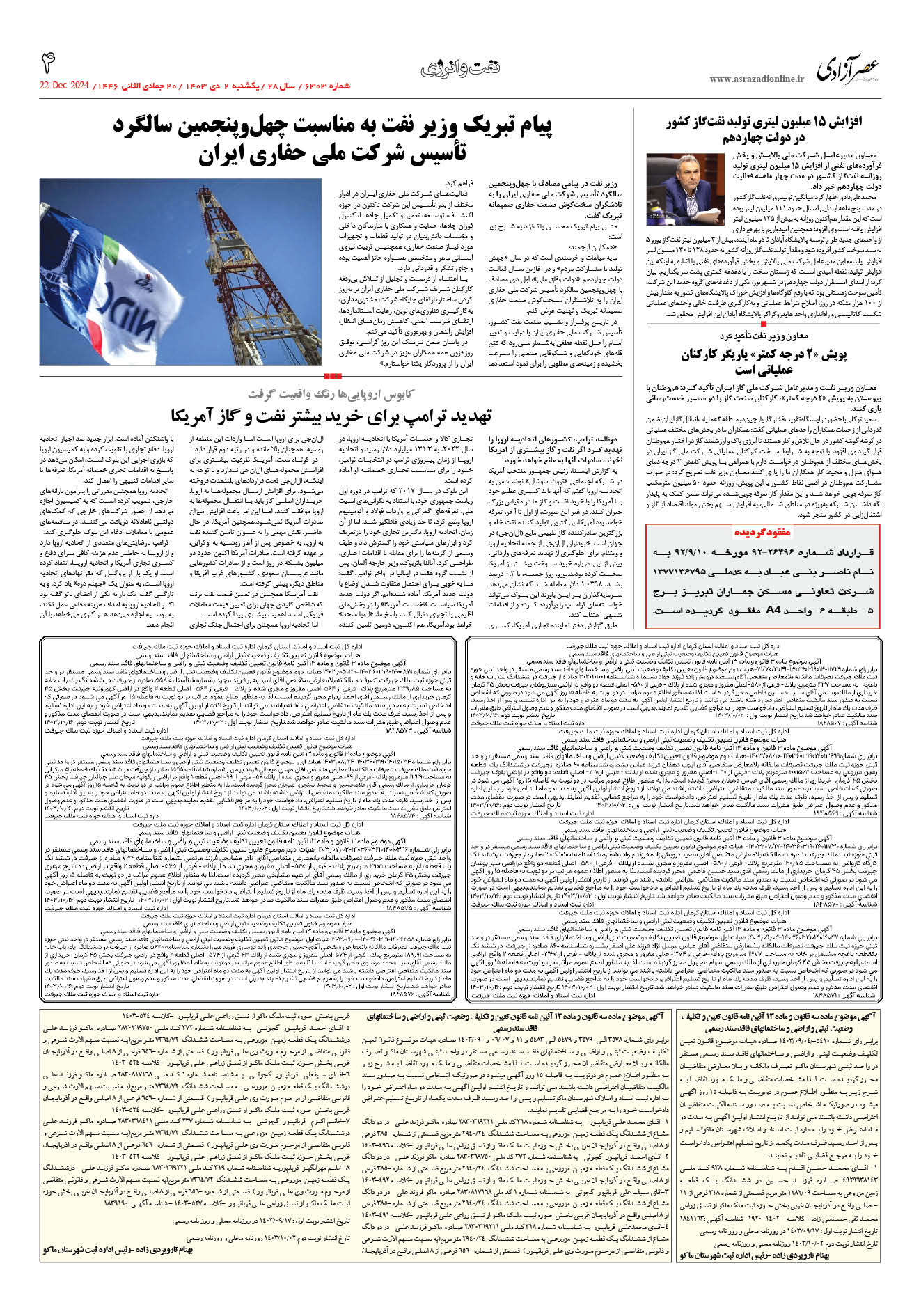 6303 روزنامه بوسیله Info1 در 2 دی, 1403 1-1 1-1 1-2 1-3 1-4 1-5 1-6 1-7 1-8 Prev 1 از 8 Next 1 2 3 4 5 6 7 8 به اشتراک گذاری پرینتفیسبوکTwitterگوگل پلاسWhatsAppپست الکترونیکTelegramLinkedin