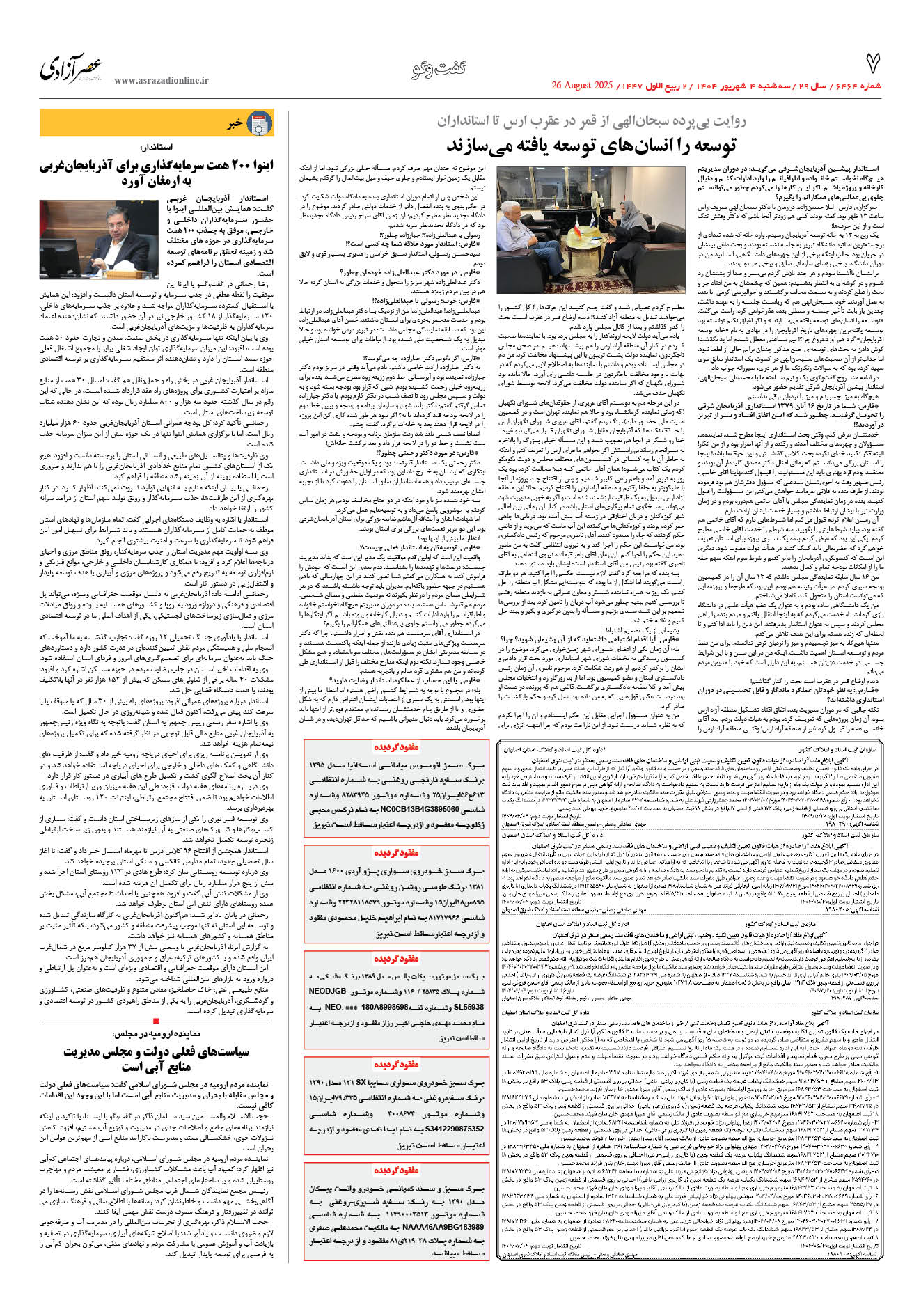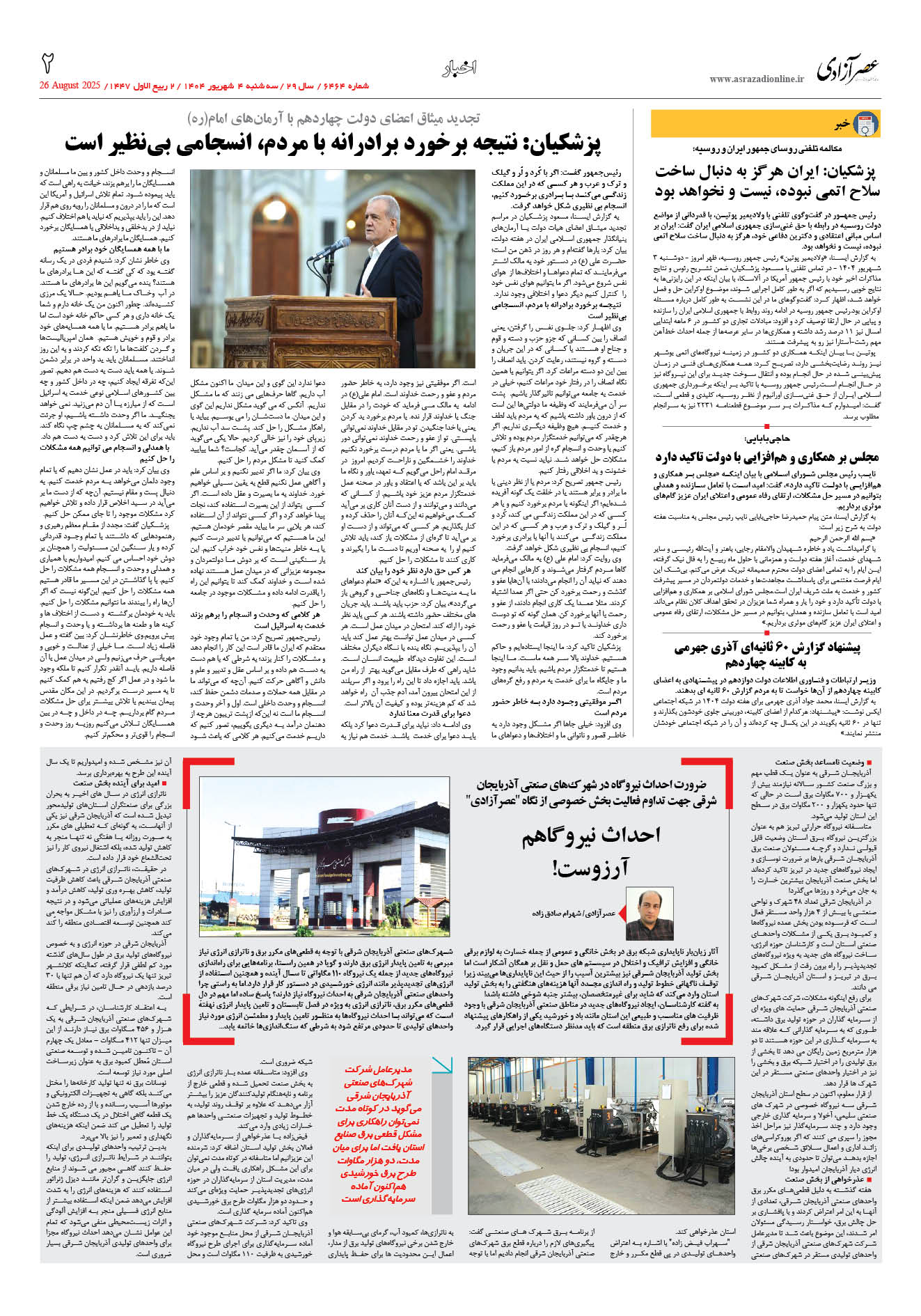 6464 روزنامه بوسیله Info3 در 4 شهریور, 1404 1-1 1-1 1-2 1-3 1-4 1-5 1-6 1-7 1-8 Prev 1 از 8 Next 8 7 6 5 4 3 2 1 به اشتراک گذاری پرینتفیسبوکTwitterگوگل پلاسWhatsAppپست الکترونیکTelegramLinkedin