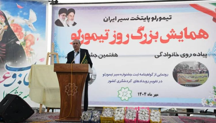 ارگانها و سازمانهای استانی و شهرستانی خواند و افزود: بهثبت رسیدن جشنواره سیر تیمورلو در تقویم رویدادهای گردشگری کشور یک اتفاق مهم و گامی مؤثر در معرفی ظرفیتهای کشاورزی و گردشگری تیمورلو است و انتظار داریم با حمایت مسؤولان ملی و استانی، تیمورلو بهعنوان شهر ملی سیر ثبت شود و مسیر توسعه اقتصادی و فرهنگی منطقه بهسرعت انجام شود.