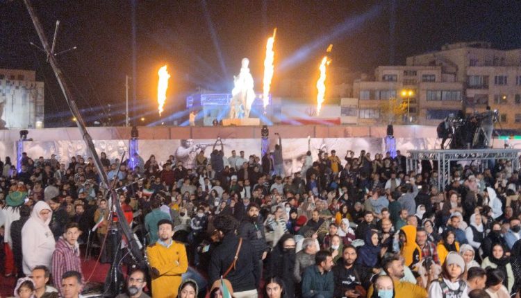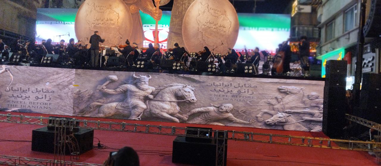 باحضوردکترعلیرضا زاکانی شهردارتهران حجت الاسلام محمد قمی ریاست سازمان تبلیغات اسلامی وجمع کثیری ازخبرنگاران واصحاب رسانه وعلاقمندان «ایونت شب ایران» به مناسبت رونمایی از مجسمه «زانو زنندگان برابر ایران»